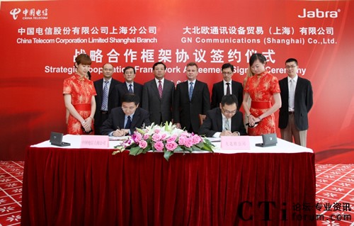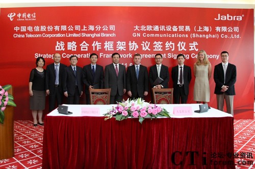 CTI論壇(ctiforum)6月23日消息(記者 楊佳林):上!蝾I(lǐng)先的創(chuàng)新耳麥解決方案提供商大北歐公司(GN Netcom)與中國電信上海公司(以下簡稱上海電信)今日隆重舉辦了 “戰(zhàn)略合作框架協(xié)議簽約儀式”。上海電信資深經(jīng)理花銳強、大北歐公司亞太區(qū)總裁Mark Leigh,及雙方公司高層領(lǐng)導(dǎo)共同出席了此次慶典。Mark Leigh先生還代表了大北歐公司將Edouard Suenson先生——“將電報引入中國的丹麥人”的雕像捐贈給上海電信博物館,見證了中國與丹麥源于19世紀(jì)末在通信方面的成功合作。