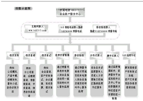 “企業(yè)客戶服務系統(tǒng)”是“中國電信168315企業(yè)客戶服務中心”的核心產品,它的功能涵蓋了目前中心平臺提供的所有服務項目。