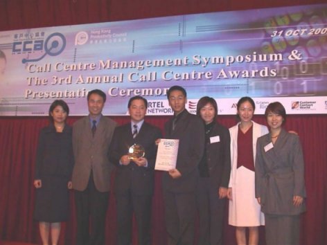 香港 2002年10月31日-在全球呼叫中心業(yè)享有盛譽的香港客戶中心協(xié)會日前宣布了2002年度各獎項獲獎名單。在今天下午舉行的第三屆年度呼叫中心頒獎典禮上,飛翱網(wǎng)訊成為年度最佳呼叫中心獎得主之一。這是繼去年以來,飛翱網(wǎng)訊連續(xù)第二年獲此殊榮。與此同時,來自于飛翱網(wǎng)訊香港公司的業(yè)務(wù)主管,Gray Ho先生被授予了呼叫中心團隊領(lǐng)導人優(yōu)勝獎。經(jīng)過專家評審團的層層篩選,飛翱網(wǎng)訊在各個考核指針上均有不俗的表現(xiàn),并最終從其它數(shù)十家香港呼叫中心運營商中脫穎而出。