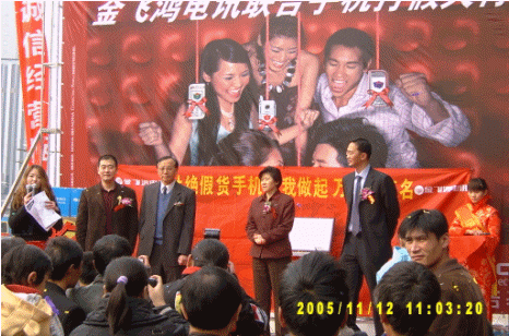 11月12日上午,賽迪呼叫中心與京城著名手機(jī)連鎖賣(mài)場(chǎng)--金飛鴻電訊聯(lián)手,在金飛鴻在首體店舉行"95121315手機(jī)防偽查詢熱線指定合作單位"揭牌儀式,在國(guó)家信息產(chǎn)業(yè)部的認(rèn)證下,成為京城首個(gè)"手機(jī)防偽查詢熱線指定合作單位",迎來(lái)了京城手機(jī)賣(mài)場(chǎng)打假維權(quán)的規(guī)范化時(shí)代。