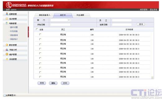 利用統(tǒng)計部分的四項內(nèi)容實現(xiàn)對座席從招聘前、招聘中和招聘后的全面管理,通過培訓使座席擁有工作必備的知識、技能和能力,培養(yǎng)他們對企業(yè)的認同感、歸屬感,同時,利用詳盡的考勤管理最大限度、公平合理地滿足座席內(nèi)在報酬和外在報酬上的期望和需要。