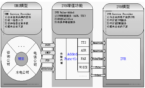 。ㄈ┩ㄟ^電話獲取信息的方式伴隨Internet的發(fā)展而改變. WEB提取信息簡單,快捷.直觀.這使得我們建設(shè)WEB系統(tǒng)提供機(jī)會. 使用我們IVR Service的企業(yè)都可以使用我們的WEB服務(wù),這樣我們不僅僅做IVR服務(wù),我們還可以做UMS服務(wù)提供商(UMS Service Provider)