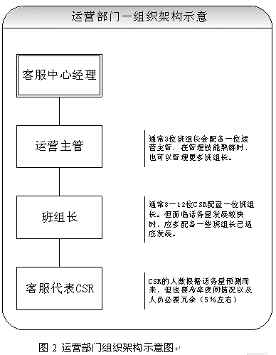 關(guān)于團隊的建設(shè),應(yīng)該首先考慮組織架構(gòu)的設(shè)立。從運營角度講,設(shè)置客服中心經(jīng)理、運營主管、班組長、客服代表都是必須的。當然根據(jù)不同的規(guī)模,也可以增加或者減少層級。具體建議請見圖2所示。除了運營之外,對于大型呼叫中心(50坐席以上,或者業(yè)務(wù)較為復(fù)雜的),也應(yīng)考慮相關(guān)部門的設(shè)立。比如客戶關(guān)注組,可以負責疑難問題解決、工單流轉(zhuǎn)、投訴處理、建議處理、知識庫建設(shè)采編等等;培訓組可以負責管理、組織、實施員工培訓;技術(shù)維護組可以負責系統(tǒng)維護、網(wǎng)絡(luò)維護、新項目應(yīng)用界面開發(fā)、部分系統(tǒng)優(yōu)化;綜合行政可以負責人事、行政等事務(wù)。