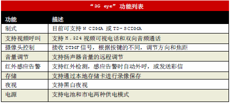“3Geye”業(yè)務(wù)是由上海貝爾股份有限公司開發(fā)的一個針對家庭及小型商品市場的視頻監(jiān)控類業(yè)務(wù),它利用3G中獨有的64K視頻電路域,建立起用戶與前端攝像頭的視頻電話,從而達到視頻監(jiān)控的目的。