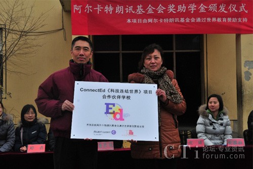CTI論壇(ctiforum)3月6日消息(記者 浩宇):近日,法國(guó)阿爾卡特朗訊基金會(huì)(Alcatel-Lucent Foundation)與美國(guó)非營(yíng)利組織世界教育(World Education)在北京市大興區(qū)農(nóng)民工子弟學(xué)!埡W(xué)校聯(lián)合舉辦公益助學(xué)活動(dòng),來(lái)自阿爾卡特朗訊中國(guó)旗艦企業(yè)——上海貝爾及世界教育的志愿者為45名貧困生、72名成績(jī)優(yōu)秀學(xué)生、244名成績(jī)進(jìn)步獎(jiǎng)獲得者共計(jì)361人發(fā)放獎(jiǎng)助學(xué)金和獎(jiǎng)狀。此次活動(dòng)是ConnectEd“科技連結(jié)世界”項(xiàng)目協(xié)助流動(dòng)青少年“透過(guò)科技擁抱世界”系列公益活動(dòng)的重要一站,ConnectEd “科技連結(jié)世界”項(xiàng)目由阿爾卡特朗訊基金會(huì)(Alcatel-Lucent Foundation)與世界教育(World Education)共同在全球推動(dòng)。作為志愿者之一,上海貝爾執(zhí)行副總裁、阿爾卡特朗訊中國(guó)區(qū)產(chǎn)品與研發(fā)負(fù)責(zé)人莊靖博士參與了此次活動(dòng),并為阿爾卡特朗訊ConnectEd項(xiàng)目合作校揭牌。雙方還在北京市昌平區(qū)新源學(xué)校舉行了公益助學(xué)活動(dòng),為45名貧困生、39名成績(jī)優(yōu)秀學(xué)生、52名成績(jī)進(jìn)步獎(jiǎng)獲得者共計(jì)136人發(fā)放獎(jiǎng)助學(xué)金。