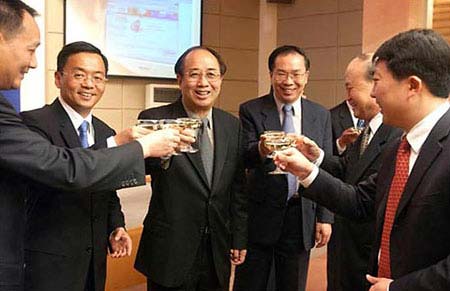 國務(wù)院新聞辦領(lǐng)導(dǎo)和上海貝爾阿爾卡特股份有限公司官員合影留念