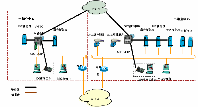 基礎(chǔ)語(yǔ)音系統(tǒng)采用阿爾卡特OmniPCX Enterprise語(yǔ)音通信平臺(tái),它采用分布式的語(yǔ)音體系架構(gòu),完全融合IP技術(shù),并可集成傳統(tǒng)的TDM語(yǔ)音。OmniPCX Enterprise提供開放的標(biāo)準(zhǔn)和靈活的擴(kuò)展能力,并提供99.999%的高可靠性。讓用戶靈活的配置其座席的地理位置和通信方式,并保證系統(tǒng)運(yùn)行安全可靠。OmniPCX Enterprise交換機(jī)(二期)計(jì)劃采用Appliance Server呼叫服務(wù)器雙備份結(jié)構(gòu),提供RSI接口與GENESYS相連,以及并線錄音系統(tǒng)接口。今后,項(xiàng)目還將采用先進(jìn)的阿爾卡特-My Phone IP WEB軟電話,提高內(nèi)部通信能力,優(yōu)化業(yè)務(wù)流程。