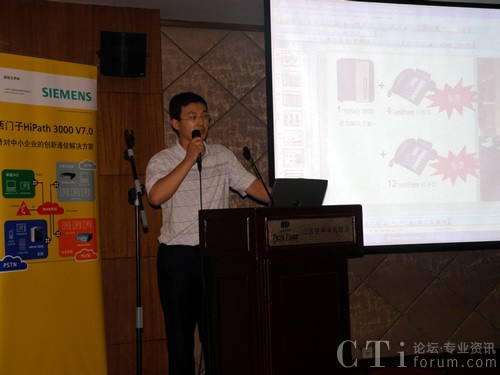 圖:廣東領(lǐng)域集團技術(shù)總監(jiān)趙龍 西門子HiPath 3000 V7.0 產(chǎn)品介紹