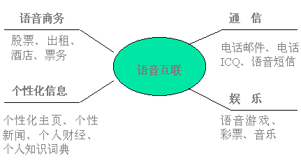 在中國(guó),電話有著最廣泛的用戶群;追求方便時(shí)尚,希望使用互聯(lián)網(wǎng)信息、郵件而不懂或不熟悉鍵盤操作的用戶占4/5;語(yǔ)音互聯(lián)網(wǎng)是電話網(wǎng)與互聯(lián)網(wǎng)的完美結(jié)合,通過語(yǔ)音互聯(lián),普通電話用戶用自然語(yǔ)言對(duì)話的方式即可獲取互聯(lián)網(wǎng)的主要服務(wù),滿足用戶任何時(shí)間、任何地點(diǎn)、任何設(shè)備獲取信息的需求。在美國(guó)、日本,語(yǔ)音互聯(lián)已成為簡(jiǎn)易終端接入互聯(lián)網(wǎng)的主要方式之一。