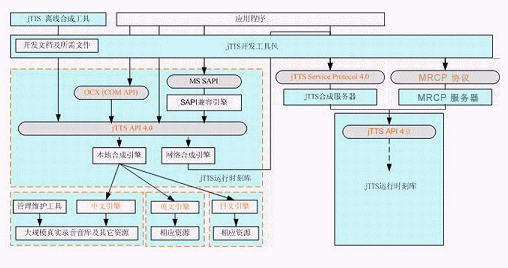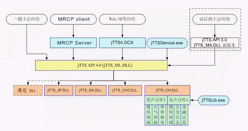 Programming Interface),即jTTS API 4.0,以及統(tǒng)一的多語種引擎管理模塊,即jTTS_ML.DLL。多語種的引擎(例如中文引擎jTTS_CH.DLL,英文引擎jTTS_EN.DLL等)在多語種引擎管理模塊的調(diào)度下進行實際的合成工作,而目前尚未提供的其他語種的引擎也可以方便地加入到這個體系結(jié)構(gòu)中來。