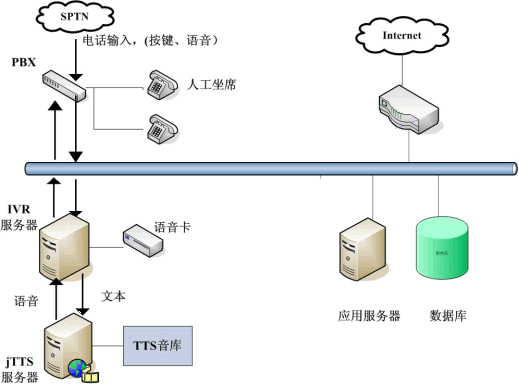 jTTS在12320中的應(yīng)用主要表現(xiàn)在查詢結(jié)果的語音返回和服務(wù)信息的發(fā)布上。只要將捷通TTS服務(wù)器集成到現(xiàn)有的IVR系統(tǒng)中,并且在IVR服務(wù)端設(shè)置好預(yù)讀出的文本即可。眾所周知,“12320”公益服務(wù)熱線需要提供海量關(guān)于我國公共衛(wèi)生相關(guān)法律法規(guī)、各種重大疾病的預(yù)防保健知識(shí)的宣傳和咨詢服務(wù),如果采用傳統(tǒng)人工座席或請(qǐng)專業(yè)播音人員錄音,費(fèi)時(shí)費(fèi)力,且投入較大。用語音合成技術(shù)(TTS)來解決,用戶提交查詢請(qǐng)求,IVR服務(wù)器收到請(qǐng)求后會(huì)向其他應(yīng)用服務(wù)器提交,當(dāng)IVR得到查詢結(jié)果后,將文本形式的查詢結(jié)果交給jTTS服務(wù)器,jTTS服務(wù)器返回查詢結(jié)果的語音形式,最終語音在坐席上播放,用戶就可以聽到所要查詢的信息(如圖)。這樣市民可以24小時(shí)撥打熱線,查詢各方面的內(nèi)容,不受時(shí)間限制,既節(jié)約政府開支,為民辦實(shí)事,而且在最大程度上提高了辦事效率,樹立了良好的政府形象。