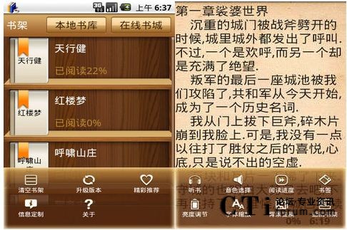 只要將捷通華聲出品的聽(tīng)書(shū)軟件安裝在Android1.6以上系統(tǒng)的智能手機(jī)中,即可隨心暢讀,捷通聽(tīng)書(shū)是捷通華聲人機(jī)交互(HCI)技術(shù)的創(chuàng)新之作,它運(yùn)用嵌入式語(yǔ)音合成技術(shù),無(wú)需人工進(jìn)行預(yù)置錄音,無(wú)論什么文體,都可進(jìn)行順暢的海量閱讀,這樣的海量閱讀并不會(huì)給手機(jī)的存儲(chǔ)空間帶來(lái)負(fù)擔(dān),現(xiàn)在就可在官網(wǎng)中http://www.hcicloud.com/xiazai.asp?id=2&classtitle=手機(jī)伴侶&clid=3 下載捷通TTS組件,只要電子書(shū)的格式為純文本文件TXT格式,便可順利進(jìn)行語(yǔ)音朗讀。您可以選擇男聲、女聲和寶寶聲,音質(zhì)清晰可媲美真人發(fā)聲,聽(tīng)書(shū)已不再成為難事。捷通聽(tīng)書(shū)軟件外觀整體設(shè)計(jì)古樸典雅,仿佛真能聞到書(shū)香的氣息,這樣的視聽(tīng)氛圍會(huì)立刻帶你進(jìn)入到聽(tīng)書(shū)的境界中。獨(dú)特的翻頁(yè)模式更具人性化的設(shè)計(jì),讓人機(jī)交互更像真正意義上的翻頁(yè)讀書(shū),無(wú)論是聽(tīng)書(shū),還是看書(shū),都給人帶來(lái)美好的體驗(yàn)。另外,捷通華聲的語(yǔ)音合成技術(shù)還可提供多種音色的備選方案,可根據(jù)用戶的需求進(jìn)行選用,同時(shí)支持英語(yǔ)、日語(yǔ)、俄語(yǔ)、德語(yǔ)、意大利語(yǔ)等多個(gè)語(yǔ)種的語(yǔ)音合成技術(shù),為用戶提供真正多方位的服務(wù)。近日,捷通聽(tīng)書(shū)還在BTV《在線E起來(lái)》欄目中精彩亮相,節(jié)目中的多項(xiàng)測(cè)評(píng)使這款軟件表現(xiàn)不俗,捷通聽(tīng)書(shū)軟件再次成為智能手機(jī)軟件應(yīng)用中的新亮點(diǎn)。