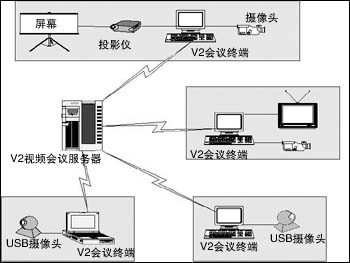 V2 Conference 視頻會議系統(tǒng)是基于MPEG-4標準的多媒體壓縮技術(shù),利用IP網(wǎng)絡(luò)開展視頻會議的軟件系統(tǒng)。在從56Kbps撥號到寬帶的網(wǎng)絡(luò)環(huán)境下,用戶利用V2 Conference視頻會議平臺,通過配備普通的PC機、標準的音視頻采集和輸出設(shè)備,就可以實現(xiàn)基于Intranet/Internet的虛擬會議。系統(tǒng)不僅可以提供流暢的語音,而且提供清晰流暢的視頻圖像。與傳統(tǒng)的基于硬件的解決方案相比,V2 Conference 是純軟件解決方案。用戶無需投入高昂的成本,就能夠?qū)崿F(xiàn)高質(zhì)量、高可靠性的音視頻通訊、協(xié)同工作、文檔共享、遠程會議管理等多種會議功能,有效地節(jié)約時間和經(jīng)費,提高企業(yè)的工作效率。