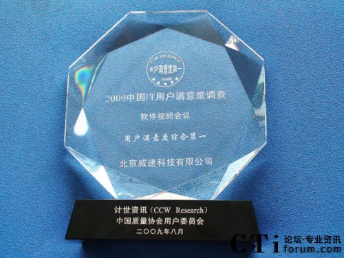 CTI論壇(ctiforum)09月03日消息: 在27日剛剛結束的“2009中國IT用戶滿意度年會”上,威速科技喜獲“2009軟件視頻會議IT用戶滿意度綜合第一”大獎。憑借在產品與服務方面多年的優(yōu)異表現(xiàn),成立10周年的威速科技連續(xù)9年獲此殊榮,這也充分彰顯了威速科技已成為視頻會議軟件市場上公認的滿意品牌。