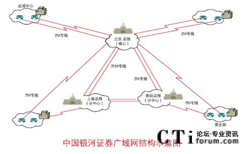 銀河證券采用二級網(wǎng)絡(luò)結(jié)構(gòu),其中一級采用三中心的冗余結(jié)構(gòu);二級為各營業(yè)部。營業(yè)部線路上采用雙專線的冗余線路方式,其中兩條線路分別屬于兩家不同的電信運(yùn)營商。營業(yè)設(shè)備上采用雙設(shè)備,保證了營業(yè)部在設(shè)備上的冗余,避免硬件設(shè)備單點(diǎn)故障,同時(shí)實(shí)現(xiàn)了業(yè)務(wù)網(wǎng)與辦公網(wǎng)的物理分離。