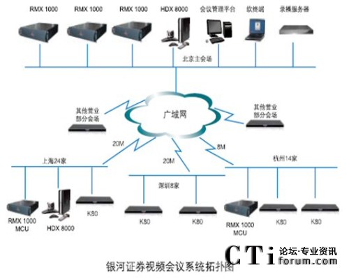 銀河證券視頻會議系統(tǒng)采用寶利通視頻會議產(chǎn)品,在銀河證券北京總部中心機(jī)房配備寶利通新一代實(shí)時(shí)媒體會議平臺 RMX 1000 MCU和高清錄播服務(wù)器;在上海和杭州也分別配置了RMX