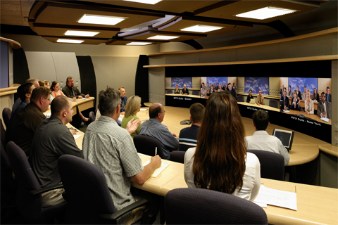 而真正的極致遠真環(huán)境則是由一組而不是一個攝像頭將遠端會場多個角度同時拍攝,組合為完整的無拼接畫面;會場顯示系統(tǒng)全景顯示遠端會場,每個角度與會者均清晰可辨;本地和遠端渾然一體,仿佛身居同一個會場;這就是寶利通極致遠真帶給您的當今最高效遠程交流工具,以其獨特的優(yōu)勢彌補您93%的信息空白。