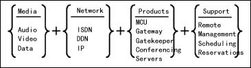 6. 其他專業(yè)行業(yè)。如氣象會(huì)商、水利防汛、司法應(yīng)用、銀行應(yīng)用等。 隨著中國加入WTO和世界經(jīng)濟(jì)一體化發(fā)展,對(duì)于任何公司,靠技術(shù)壁壘去贏得市場(chǎng)幾乎是不可能的。從圖3也可以看出,視訊應(yīng)用包括視音頻及數(shù)據(jù)源(Media)、傳輸網(wǎng)絡(luò)(Network)、視訊設(shè)備(Products)和專業(yè)的服務(wù)和支持(Support)。