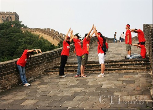 瞧瞧我們這架勢(shì),時(shí)刻都不忘給自己是來自招商銀行的志愿者。在長城上擺CMB(China Merchants Bank),真是太有創(chuàng)意啦!