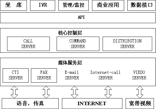 億陽信通ICSYS智能呼叫中心系統(tǒng)采用媒體抽象的設(shè)計(jì)思想,通過媒體服務(wù)層屏蔽不同媒體的差異,允許以一種統(tǒng)一的消息處理機(jī)制來定義呼叫,把復(fù)雜的通道處理過程對(duì)客戶及服務(wù)代表完全屏蔽,實(shí)現(xiàn)媒體無關(guān)性。這種結(jié)構(gòu)使系統(tǒng)具有良好的擴(kuò)展能力,可根據(jù)具體的應(yīng)用場(chǎng)景增加或減少媒體;當(dāng)新的媒體出現(xiàn)時(shí),只需開發(fā)對(duì)應(yīng)的媒體服務(wù)器,系統(tǒng)核心層不需作任何修改即可支持新的媒體。
