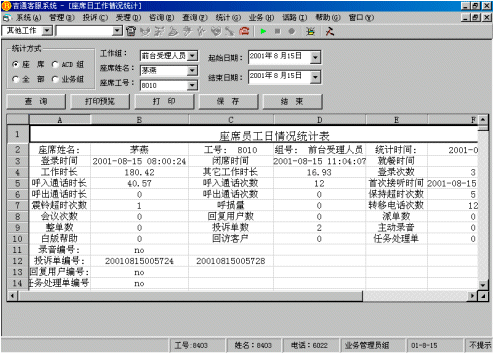 ● 日志記錄及統(tǒng)計(jì)功能:系統(tǒng)能自動(dòng)將客戶的呼叫記錄、人工座席的服務(wù)記錄、系統(tǒng)的運(yùn)行記錄、系統(tǒng)異常記錄等寫入日志,為統(tǒng)計(jì)各坐席的工作量和分析整個(gè)呼叫中心的工作效率和服務(wù)資源瓶頸準(zhǔn)備基礎(chǔ)數(shù)據(jù),在必要時(shí)可生成報(bào)表以備考核。