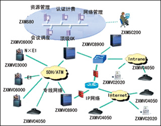 大型行政視訊系統:以它為核心骨干,以320系統為延伸,以IP為補充,組建以專線方式為主的寬帶高清視訊系統。采用ZXMVC8900+ZXMVC6000組建網絡主體,在信道有限的地區(qū)采用ZXMVC3000終端,在信道有條件后可平滑升級到ZXMVC