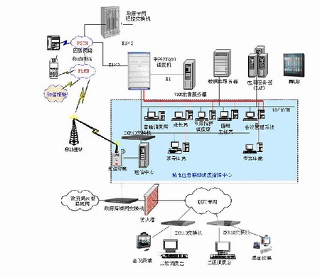 下圖是一個(gè)城市應(yīng)急聯(lián)動(dòng)中心具體組網(wǎng)拓?fù)洌?br>