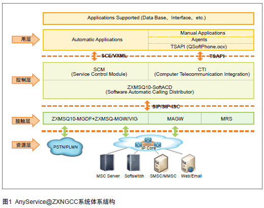 中興通訊AnyService@ZXNGCC多媒體統(tǒng)一接觸中心系統(tǒng)以中興通訊ZXMSQ10多媒體軟排隊機系統(tǒng)為基礎(chǔ),基于軟交換技術(shù)。ZXMSQ10由接入網(wǎng)關(guān)和軟排隊機兩個核心部件組成,語音、視頻呼叫(呼入和呼出)通過ZXMSQ10多媒體軟排隊機匯聚到AnyService@ZXNGCC系統(tǒng),其他媒體通過MAGW接入到NGCC系統(tǒng),同時AnyService@ZXNGCC也選擇最佳的媒體類型將信息主動反饋給用戶,形成雙向溝通的渠道,實現(xiàn)呼叫中心系統(tǒng)的被動服務(wù)和主動服務(wù)。