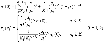 分別為語音自動(dòng)應(yīng)答系統(tǒng)與人工服務(wù)系統(tǒng)的平穩(wěn)狀態(tài)分布。