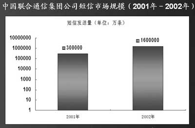 “從2001年的189億條增長到2002年的超過900億條,我國短信業(yè)務(wù)的增長率是移動(dòng)用戶數(shù)增長率的3.4倍。” 計(jì)世資訊分析師許牧說。