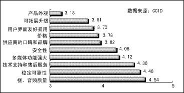 CCID對(duì)視頻會(huì)議現(xiàn)狀調(diào)查結(jié)果顯示,與以往相比,用戶對(duì)視頻會(huì)議終端系統(tǒng)的選擇標(biāo)準(zhǔn)已經(jīng)發(fā)生了變化。用戶除了一如既往地要求很好的音視頻質(zhì)量外,對(duì)產(chǎn)品的穩(wěn)定可靠性、技術(shù)支持和售后服務(wù)、多媒體功能、安全性四項(xiàng)也有要求。其中,用戶對(duì)視頻會(huì)議終端系統(tǒng)的多媒體功能和設(shè)備的可拓展升級(jí)提出了更高的要求,而不再局限于視音頻質(zhì)量和穩(wěn)定、可靠性上,對(duì)多媒體功能的需求在不斷地增長(zhǎng)。更多的用戶不僅把會(huì)議系統(tǒng)用于視音頻開會(huì),更將視頻會(huì)議的多媒體功能作為采購的重要指標(biāo)之一。