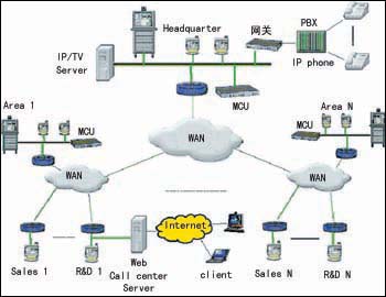 Conference(會議): 一種方式是采用如電話、媒體等實時通信,另一種方式是以Web為基礎的數據會議應用。從這點來看,會議包含的即時信息,可以是音頻、視頻或文本形式,以及如遠程展示等狹義應用。它是對傳統(tǒng)觀念上的會議電視功能的兼容和繼承。