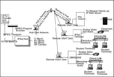 中國衛(wèi)通的“衛(wèi)星寬帶視頻會議系統(tǒng)”是一個典型的IPSat系統(tǒng),由一個發(fā)送高速上行廣播的主站和使用IPSat終端的多個遠(yuǎn)端站構(gòu)成。