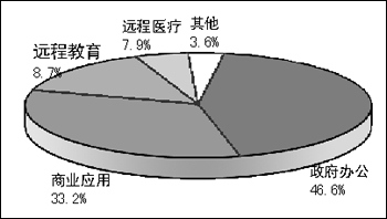 我國的遠(yuǎn)程教育和遠(yuǎn)程醫(yī)療尚處于發(fā)展初期,所占份額分別是8.7%和7.9%。這反映視頻會議系統(tǒng)在遠(yuǎn)程教育、遠(yuǎn)程醫(yī)療等方面建設(shè)力度還不夠大。不過,據(jù)研究表明,這兩個領(lǐng)域的應(yīng)用近年來呈現(xiàn)出蓬勃發(fā)展的勢頭。