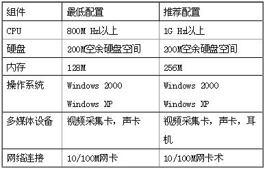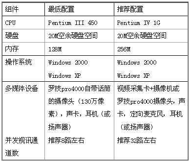 1、配置一臺(tái)服務(wù)器安裝WeCO 服務(wù)器軟件,服務(wù)器需要有靜態(tài)IP 地址,并且可以位于防火墻之后。視頻會(huì)議服務(wù)器的系統(tǒng)需求如下表所示: