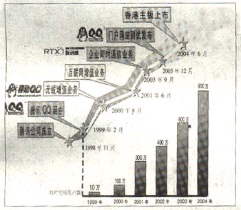 正是憑借著這些優(yōu)勢(shì),即時(shí)通信吸引聚集著一些忠誠(chéng)用戶,并開(kāi)始搭建網(wǎng)絡(luò)廣告、無(wú)線增值等一系列各種潛在的交易平臺(tái)。可以想象,一個(gè)絕佳的聊天窗口同時(shí)也是一個(gè)方便的交易窗口和暢通的付費(fèi)入口,即時(shí)通信正在摸索一條前所未有的盈利模式。有專家指出,經(jīng)過(guò)近5年的曲折前行,即時(shí)通信的盈利模式將在2005年逐步明確。以騰訊QQ為例,我們來(lái)剖析一下即時(shí)通信的盈利模式是如何由模糊走向清晰的。從1999年2月QQ發(fā)布到2000年5月,QQ迅速聚攏了10萬(wàn)用戶。2000年8月,騰訊公司同廣東移動(dòng)合作,僅僅用了一年就扭虧為盈,實(shí)現(xiàn)了1000萬(wàn)人民幣的純利潤(rùn)。
