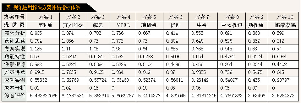 表 視訊應(yīng)用解決方案評(píng)估指標(biāo)體系
