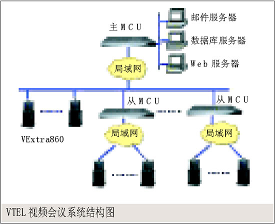 。。圖中各會議節(jié)點均配置一臺VTEL VExtra視頻會議終端,通過E1電路接入網(wǎng)絡中心的Meta