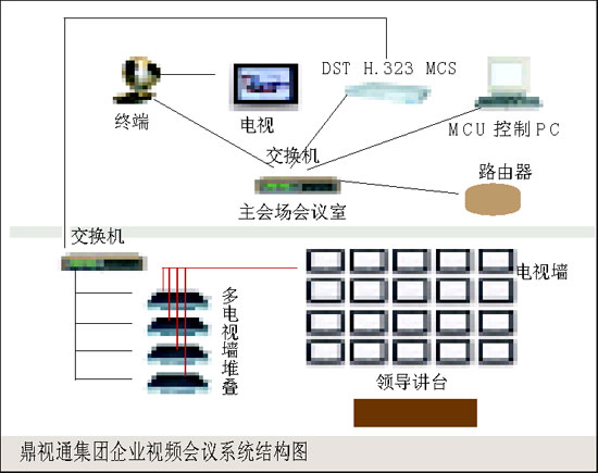 。。視頻會議的核心設備采用鼎視通公司的H.323 MCS系列MCU,這是一款1U 19英寸硬件設備,可以很方便地固定到機柜中。該MCU完全滿足7×24小時開機,MTBF大于5萬小時。設備網(wǎng)絡配置簡單,通過MCU專用控制軟件可遠程控制。