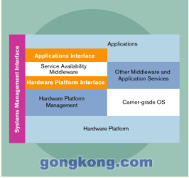 單靠硬件標(biāo)準(zhǔn)本身并不足以提供電信業(yè)要求的競(jìng)爭(zhēng)優(yōu)勢(shì)和成本優(yōu)勢(shì),新的軟件標(biāo)準(zhǔn)正在研發(fā)之中以補(bǔ)充ATCA硬件標(biāo)準(zhǔn),服務(wù)可用性論壇(SA Forum)是一個(gè)由世界領(lǐng)先的通信和計(jì)算機(jī)公司組成的組織,致力于共同開發(fā)和頒布針對(duì)高可用性和系統(tǒng)管理的軟件接口規(guī)范,并且積極推動(dòng)這些規(guī)范在行業(yè)中被采用,目前已經(jīng)頒發(fā)或正在開發(fā)的標(biāo)準(zhǔn)包括: