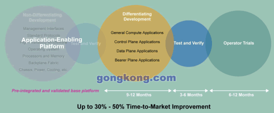 摩托羅拉將這種預(yù)集成并驗(yàn)證的基礎(chǔ)平臺(tái)稱之為面向應(yīng)用的平臺(tái),采用這個(gè)方式可以極大的加快進(jìn)入市場(chǎng)的速度,使TEM專注于開發(fā)自己產(chǎn)品的差異化功能與內(nèi)容。基于標(biāo)準(zhǔn)的平臺(tái)同時(shí)具有豐富的核心能力,從硬件,OS到高可用中間件與管理接口,它不是為單一應(yīng)用而設(shè)計(jì),而是為廣闊市場(chǎng)準(zhǔn)備的通用平臺(tái)。