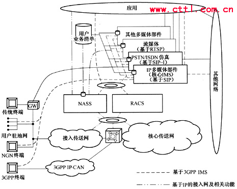 在標(biāo)準(zhǔn)方面,基于SIP的3GPP IMS是目前比較完善的體系結(jié)構(gòu),ETSI、ITU-T等已經(jīng)有在固定領(lǐng)域應(yīng)用IMS架構(gòu)的明確傾向,以后的固定NGN的多媒體域網(wǎng)絡(luò)架構(gòu)將可能基于3GPP IMS發(fā)展。同時(shí),ITU-T、ETSI所定義的NGN業(yè)務(wù)需求包括了通信、信息、娛樂等業(yè)務(wù),移動(dòng)性已經(jīng)成為固定NGN的一個(gè)重要需求,NGN將在IMS架構(gòu)基礎(chǔ)上擴(kuò)展支持固定接入和其他融合業(yè)務(wù)。
