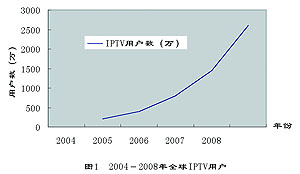 圖1 2004-2008年全球IPTV用戶發(fā)展預(yù)測(cè)