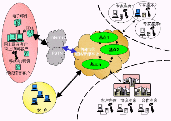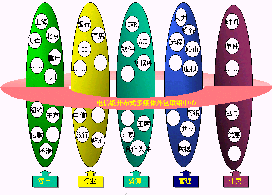 電信運營商提供的用戶、客戶、電信公司的統(tǒng)一的聯(lián)系平臺,各類客戶通過使用聯(lián)系平臺,向其用戶提供方便的、不受時間、地域和媒體的限制的"3A"級聯(lián)絡(luò)服務(wù),用戶、客戶、電信平臺間的聯(lián)絡(luò)能得到有效路由、管理、品質(zhì)保障;聯(lián)絡(luò)中心通過將分布在各地、各種媒體、各種形式的資源整合在一起實現(xiàn)客戶服務(wù)增值,創(chuàng)造無限商機(jī),有效提升客戶聯(lián)絡(luò)中心的價值,使用戶得到最貼身的、個性化的、專業(yè)的服務(wù),為客戶提供成本更低、資源更豐富、服務(wù)更專業(yè)、具備強(qiáng)大商業(yè)智能的產(chǎn)品營銷及服務(wù)、電信運營商則開發(fā)大量的增值服務(wù)、產(chǎn)生更多的利潤增長空間、更多忠實的客戶,實現(xiàn)三方面共同成功。