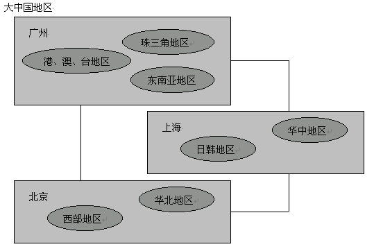 建設(shè)單點外包呼叫中心需要具備良好的地域服務(wù)功能,并應(yīng)該是政治、商業(yè)中心,有較強(qiáng)的服務(wù)需求,例如:長江三角洲的服務(wù)可選擇上海建設(shè)第一個基點中心,珠江三角洲可選擇廣州為第一基點中心,華北可選擇北京為第一基點中心。如下圖示意: