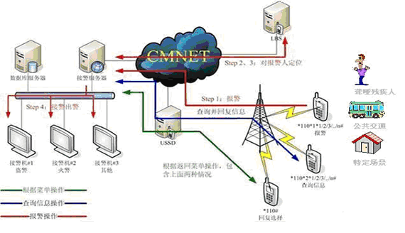 《移動定位快信報警系統(tǒng)》是基于移動運營商的USSD技術(shù),同時又融合了移動位置服務(wù)信息(LBS)和短信(SMS)技術(shù)的應(yīng)用平臺,同時該系統(tǒng)跨移動運營商專網(wǎng)和公安系統(tǒng)專網(wǎng),是公安局110指揮系統(tǒng)的組成部分之一。