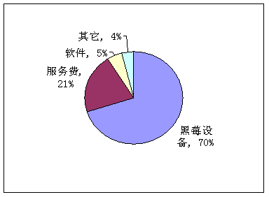 加拿大RIM公司是最早推出移動(dòng)PushE-mail業(yè)務(wù)的企業(yè),黑莓業(yè)務(wù)主要是以該公司為核心,也是目前最成功的移動(dòng)PushE-mail業(yè)務(wù)。該公司幾乎控制著圍繞黑莓業(yè)務(wù)的所有產(chǎn)品,包括終端、服務(wù)器、客戶端軟件、解決方案等,并且吸引了一批獨(dú)立軟件公司開發(fā)基于黑莓的各種軟件產(chǎn)品,如即時(shí)通信軟件、移動(dòng)營銷軟件、移動(dòng)CRM軟件等,RIM公司向這些軟件開發(fā)公司收取專利費(fèi)用。另外,在業(yè)務(wù)方面,由于RIM公司控制NOC的運(yùn)維,因此運(yùn)營商還需要向RIM公司支付服務(wù)費(fèi)。圖2為RIM公司2006財(cái)年業(yè)務(wù)收入結(jié)構(gòu)。