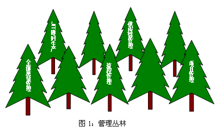 用“叢林”一詞來形容目前管理方法的林立,并沒有夸張的成份。在這片叢林中,許許多多根深葉茂的“參天大樹”不斷產(chǎn)生。許多專家學者把注意力集中于管理的某一方面,如質(zhì)量管理、流程再造、項目管理、供應(yīng)鏈管理等都體現(xiàn)了不同的管理視角。不同管理方法在理論緣由上相互促進、相互影響,他們以各自不同的方式和視角描繪了管理的不同側(cè)面。