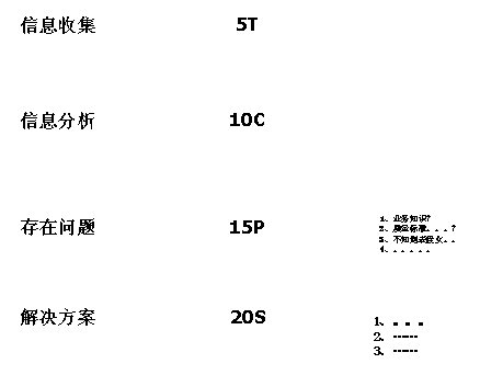 Tables)以及相應(yīng)的收集方法和時間;第二步是信息分析,明確了如何將已收集的5T(5 Tables)轉(zhuǎn)換成10張圖(10 Charts)以便進(jìn)一步分析;第三步是發(fā)現(xiàn)存在問題,明確了如何從10C(10