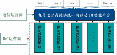 為了能夠使移動IM有效占據(jù)在未來競爭中的主動地位,運(yùn)營商就必須在自有網(wǎng)絡(luò)上對移動IM功能進(jìn)行統(tǒng)一和標(biāo)準(zhǔn)化,并對其他的移動IM予以限制和管理,以便形成合力,實(shí)現(xiàn)其既定目標(biāo)。